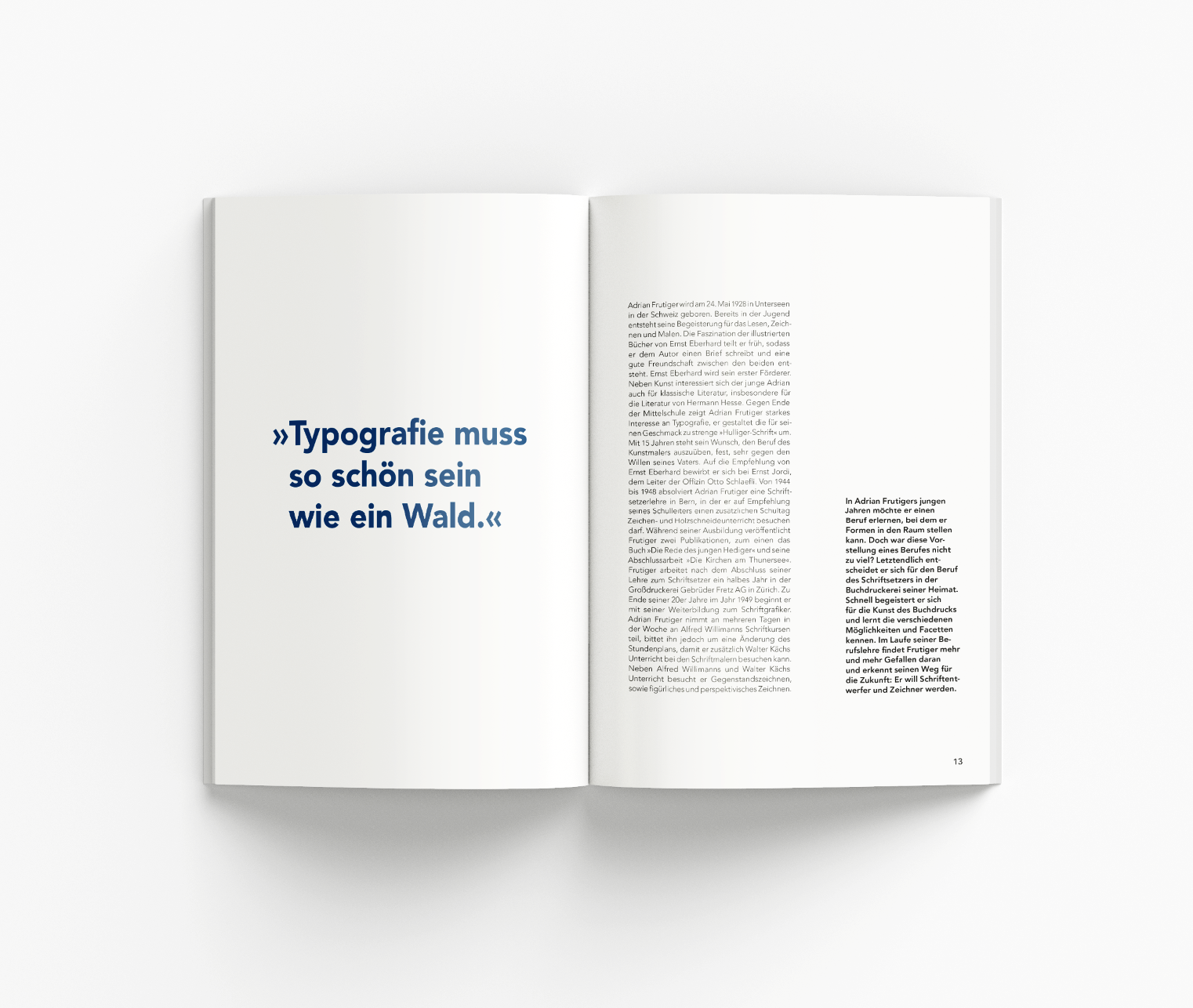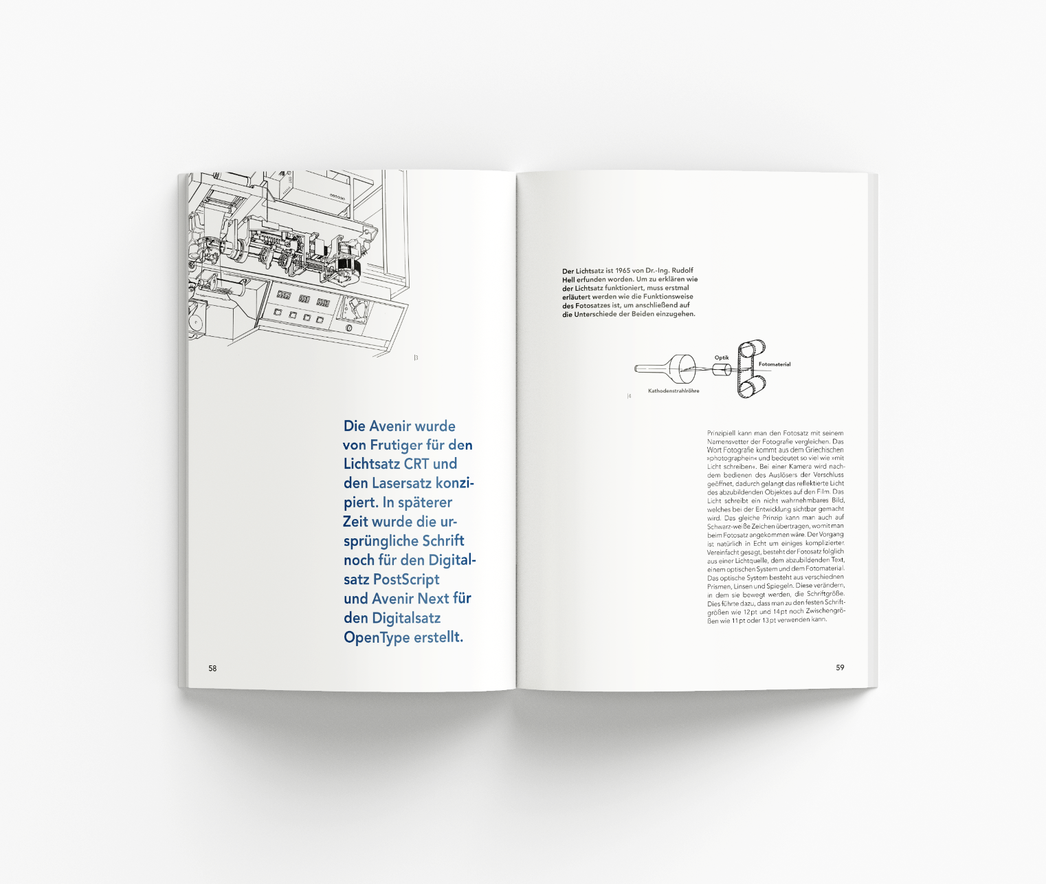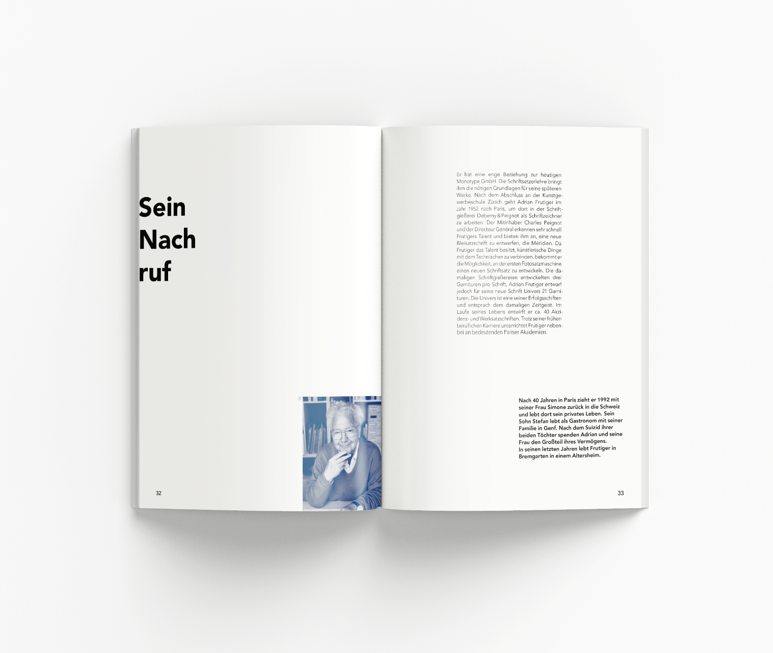 The book-length analysis of Adrian Frutiger's geometric sans serif typeface includes a study of the designer, a portrait of his life and work, an introduction to the world of 20th century geometric sans serif typefaces, the history and creation of the typeface, its analysis, and a comparison with one of its greatest rivals, Futura.